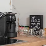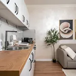 - ❓Is there a kitchen available at this apartment for guest use?Yes, this apartment is furnished with a kitchenette and offers an electric kettle, a fridge, and glassware as well.